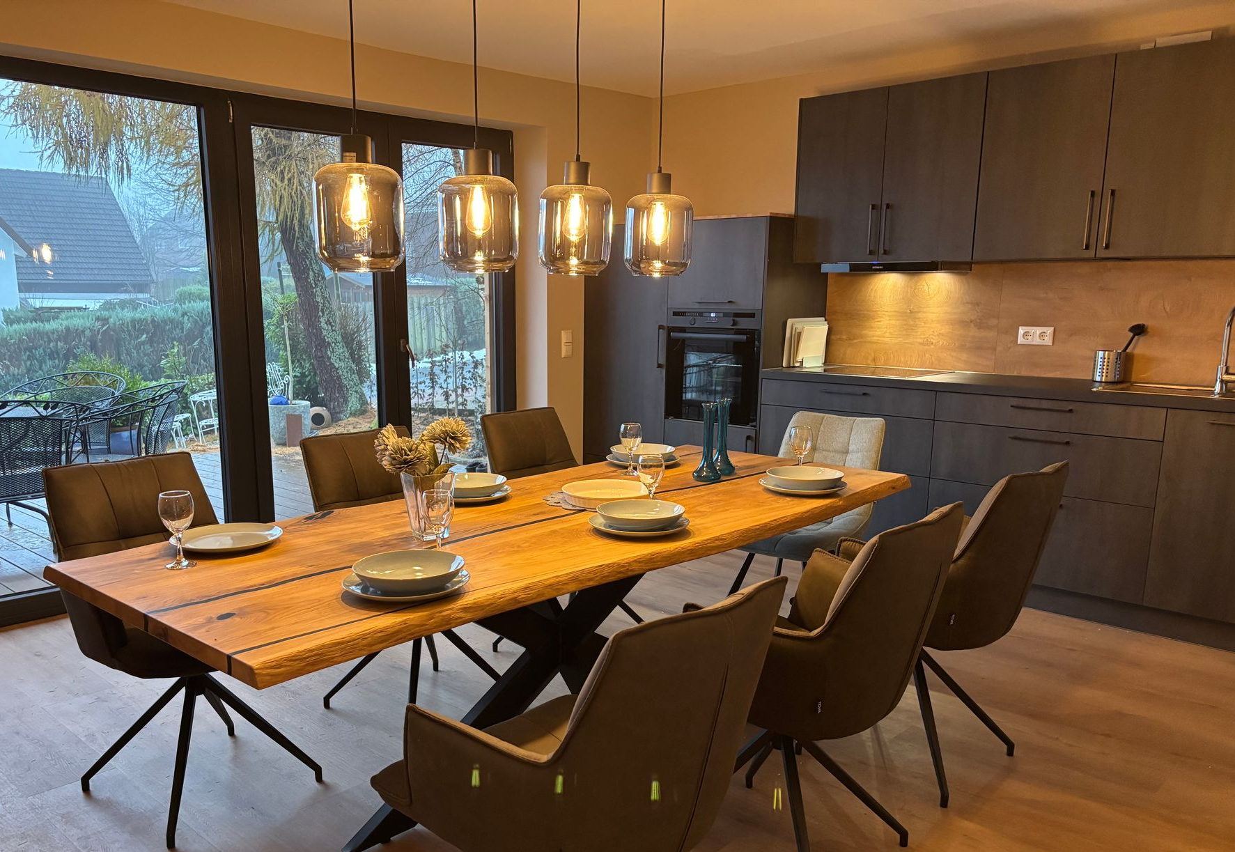 Die Bergflamme vermittelt sofort dieses wohlige „Hier bin ich zuhause“ - Gefühl. Dafür sorgt zum einen das stilvolle Ambiente: gemütliche Rückzugsmöglichkeiten in den drei hellen Schlafzimmern, ein großzügiges, behagliches Wohnzimmer, die top ausgestattete Küche mit dem großem Esstisch und die Sauna inklusive Ruheraum und Liegen.